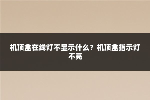 可能是机顶盒与电视机之间的连接有问题,机顶盒背后一般是有三个接线插口,分别是用来连接网线、电源线和电视机视频HDMI线的,三条线需要分别连接准确稳固,若接线松动就可能会导致机顶盒的指示灯不亮。另外,也有可能是有线电视信号的问题,若是机顶盒无法检测到有线电视信号,其指示灯也不会亮。机顶盒指示灯不亮的处理办法:1、检查有线数字电视信号线是否正确地接入到了机顶盒,是否有脱落或者接触不良的情况,若有,则需要调整有线数字电视信号线,可以拔下后重新插入尝试或者换一条新的信号线;若没有,那么可能就是有线电视信号网络的问题,可以拨打对应的有线数字电视网络供应公司的服务热线进行报修。2、先确认下机顶盒插座是否有电,然后进一步检查机顶盒电源线是否正确连接,若发现电源线损坏或老化则需要更换一条新的电源线,若电源线更换,接通电源后,机顶盒指示灯还是不亮,那么很有可能是机顶盒自身损坏,需要让售后人员上门检修或直接去售后网点进行更换。三:机顶盒在线灯不亮wifi用不了