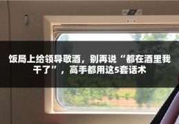 公司中领导为了让大家更有凝聚力,往往都会搞一些团建,而且有的时候我们也会遇到一个饭局,就比如请领导的,那么遇到这些饭局我们应该如何敬酒才能让领导觉得我们有发展呢?今天我就教你5套万能话术。第一套:敬上级领导:具...