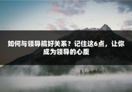在职场中你的能力其实并不是你晋升的主要条件,因为能力太强和太弱对你都没什么好处,而关乎一个人晋升的根本条件,就是成为领导的心腹,想要和领导搞好关系,那你就记住这5点,用好了让你成为领导的心腹。第一个:那些看起来...