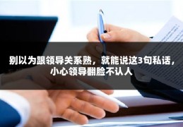 职场如江湖,不是打打杀杀,而是人情世故。在领导面前,油嘴滑舌惹人嫌弃,闷葫芦也不利成长。有些人与领导不熟悉时,谨言慎行。一旦与领导走动得比较近,关系比较熟时,就容易越过安全边界,嘴上不把门,言多必失。跟领导关系...