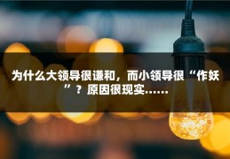 我们经常在工作场所遇到这样的事情,高级领导总是喜欢说些冠冕堂皇的场面话,好人都让他们当;小领导是执行者,专门负责那些大领导想做又没说的事。因此,领导越大,在普通员工面前就越没有架子;相反,这些小领导人会显得咄咄...